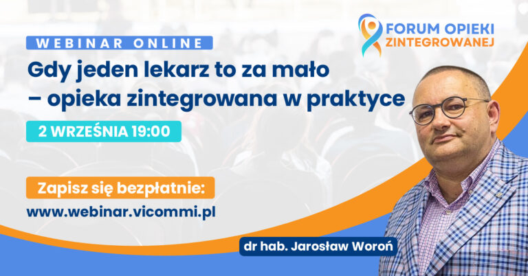 BEZPŁATNY WEBINAR ONLINE „Gdy jeden lekarz to za mało – opieka zintegrowana w praktyce” 📅 2 września 2025 r. (wtorek), godz. 19:00 Spotkanie poprowadzi dr